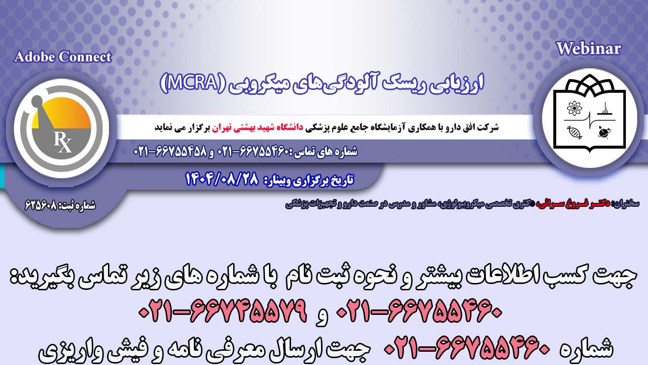 جهت مشاهده سرفصل های دوره اینجا کلیک نمایید مخاطبین: مدیران تحقیق و توسعه (R&D)، مدیران آزمایشگاههای کنترل و تضمین کیفی QC/QA، روساء و کارشناسان آزمایشگاه کنترل کیفی شهریه: (فایل آموزشی+لینک اتصال+صدورگواهینامه) مبلغ دوره+ارزش افزوده: ۲۲/۰۰۰/۰۰۰ ریال (تخفیف برای دانشجویان و ثبت نام گروهی)